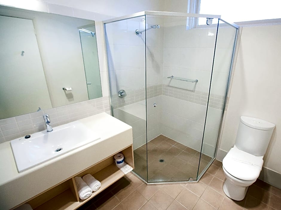 This modern, spacious, refurbished room has a queen-sized bed and a large bathroom. It also includes a microwave, flat-screen TV, work desk and free WiFi. There is a kettle, toaster as well as reverse-cycle air-conditioning.